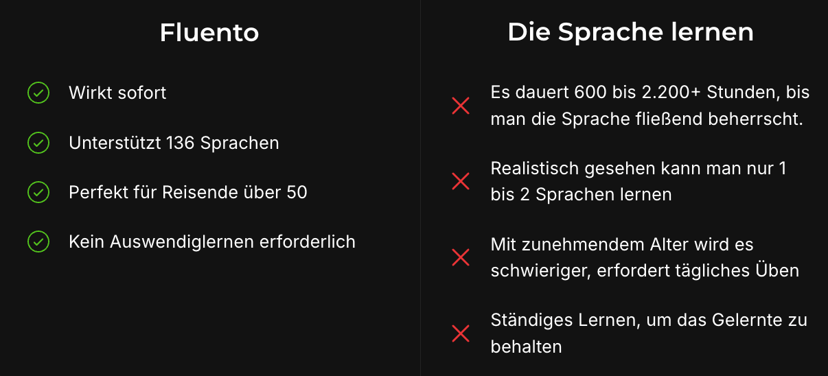 Ich mache Duolingo immer noch zum Spaß, aber Fluento ist das, was mir tatsächlich das Reisen ermöglicht.” Klaus T., 44, aus Stuttgart